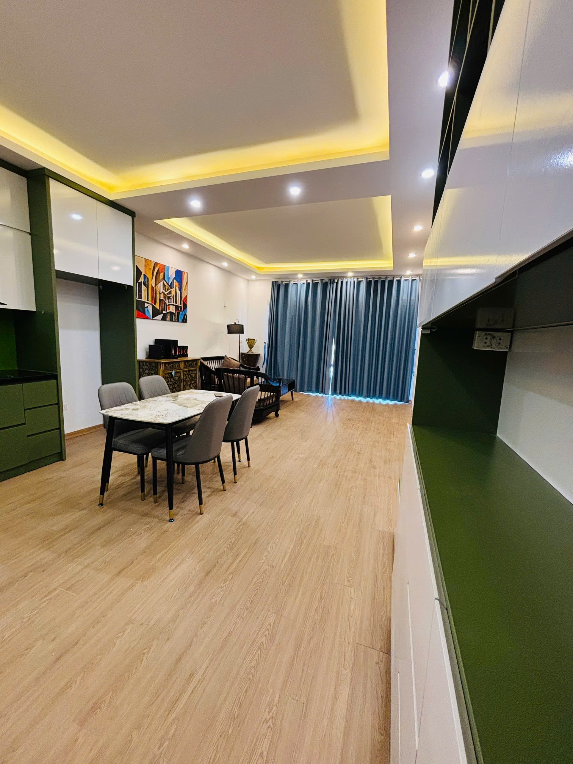 - Nội thất: sàn gỗ trần thạch cao, sofa, bàn ăn, kệ tivi, kệ trang trí, giường tủ quần áo 2 phòng, tủ bếp bếp từ, tủ giày, tủ sách